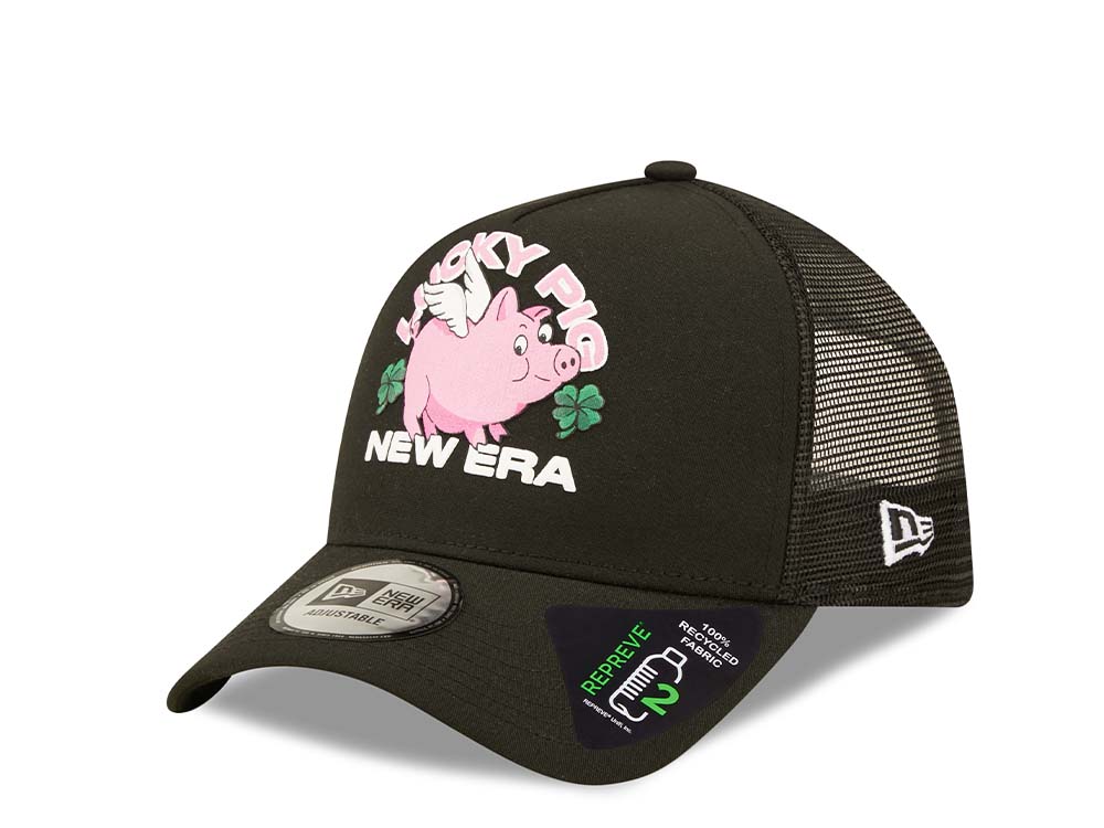New Era Lucky Pig Logo Black A Frame Trucker Snapback Cap
