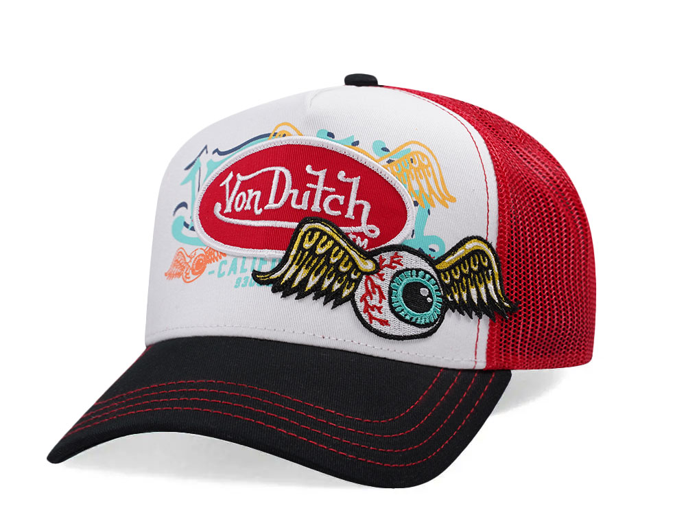 Von Dutch Flying Eye Red White Trucker Snapback Cap